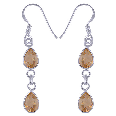 Home | Silver Earrings | Cut Stone Earrings | Beautiful Two Stone Beze Citrine Pear Shape 925 Sterling Solid Silver Dangle Earrings