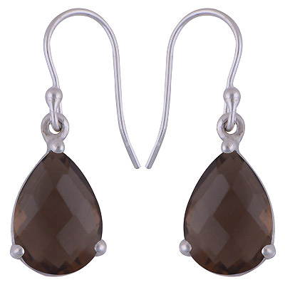 Home | Silver Earrings | Cut Stone Earrings | Dangling Prong Setting Smoky Topaz Pear Shape 925 Sterling Solid Silver Hanging Earrings