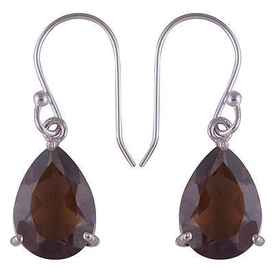 Dangling Prong Setting Smoky Topaz Pear Shape 925 Sterling Solid Silver Hanging Earrings