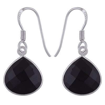Home | Silver Earrings | Cut Stone Earrings | Gorgeous Stone Black Onyx Trillion Shape 925 Sterling Solid Silver Dangle Earrings
