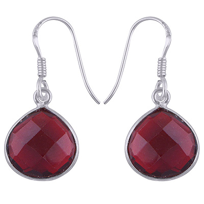 Home | Silver Earrings | Cut Stone Earrings | Gorgeous Stone Red Crystal Trillion Shape 925 Sterling Solid Silver Dangle Earrings