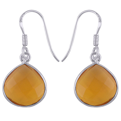 Home | Silver Earrings | Cut Stone Earrings | Gorgeous Stone Citrine Trillion Shape 925 Sterling Solid Silver Dangle Earrings