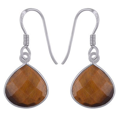 Home | Silver Earrings | Cut Stone Earrings | Gorgeous Stone Tiger's Eye Trillion Shape 925 Sterling Solid Silver Dangle Earrings