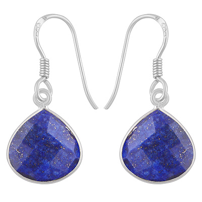 Home | Silver Earrings | Cut Stone Earrings | Gorgeous Stone Lapis Trillion Shape 925 Sterling Solid Silver Dangle Earrings