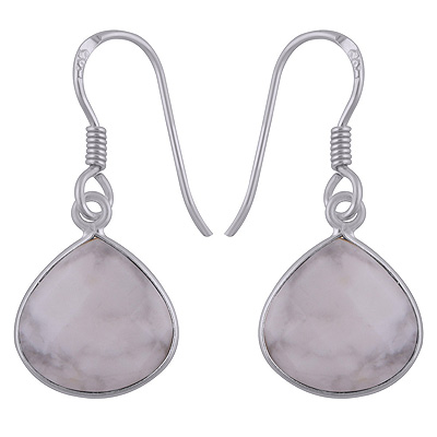 Home | Silver Earrings | Cut Stone Earrings | Gorgeous Stone Howlite Trillion Shape 925 Sterling Solid Silver Dangle Earrings