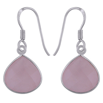 Home | Silver Earrings | Cut Stone Earrings | Gorgeous Stone Rose Quartz Trillion Shape 925 Sterling Solid Silver Dangle Earrings
