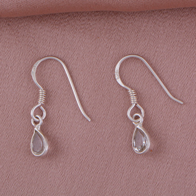 Home | Silver Earrings | Cut Stone Earrings | Gorgeous Bezel Seated Gemstone White Topaz Pear Shape 925 Sterling Solid Silver Dangle Earrings
