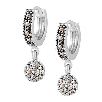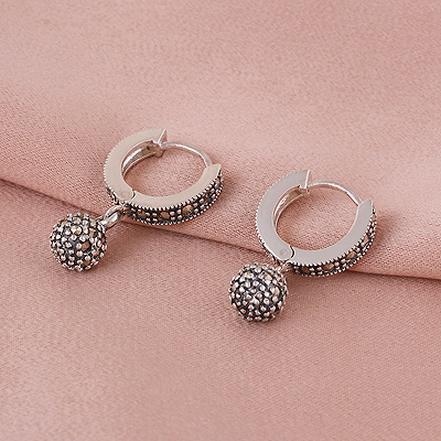 Gorgeous Gemstone Ball/Beads Hanging Marcasite Round Shape 925 Sterling Solid Silver Studs Earrings