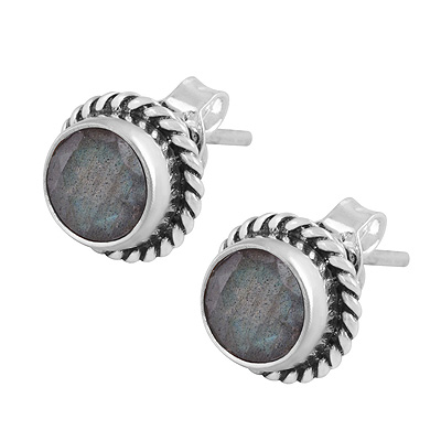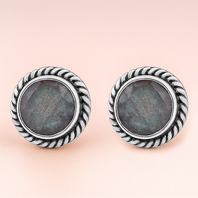 Home | Silver Earrings | cut stone studs | Gorgeous Twisted Wire Work Around Labradorite Round Shape 925 Sterling Solid Silver Stud Earrings