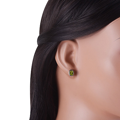 Home | Silver Earrings | cut stone studs | Plain Wire Around Peridot Oval Shape 925 Sterling Solid Silver Stud Earrings