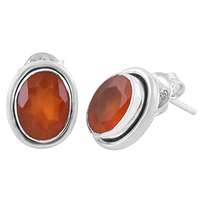 Home | Silver Earrings | cut stone studs | Plain Wire Around Carnelian Oval Shape 925 Sterling Solid Silver Stud Earrings