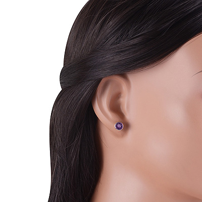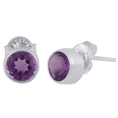 Home | Silver Earrings | cut stone studs | Alluring Gemstone Amethyst Round Shape 925 Sterling Solid Silver Stud Earrings