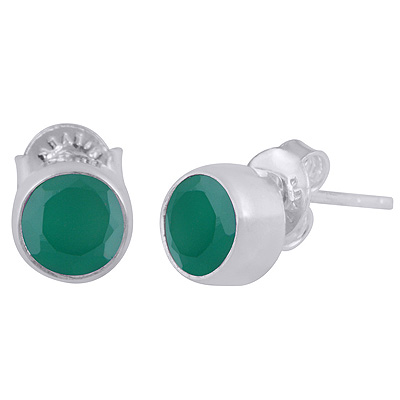 Home | Silver Earrings | cut stone studs | Alluring Gemstone Green Onyx Round Shape 925 Sterling Solid Silver Stud Earrings