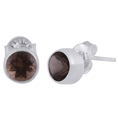 Home | Silver Earrings | cut stone studs | Alluring Gemstone Smoky Topaz Round Shape 925 Sterling Solid Silver Stud Earrings