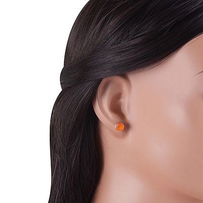 Home | Silver Earrings | cut stone studs | Alluring Gemstone Carnelian Round Shape 925 Sterling Solid Silver Stud Earrings