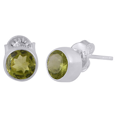 Home | Silver Earrings | cut stone studs | Alluring Gemstone Peridot Round Shape 925 Sterling Solid Silver Stud Earrings