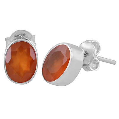 Home | Silver Earrings | cut stone studs | Beautifully Seated Gemstone Carnelian Oval Shape 925 Sterling Solid Silver Stud Earrings
