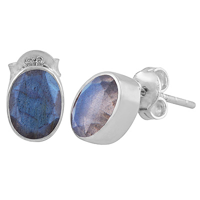 Home | Silver Earrings | cut stone studs | Beautifully Seated Gemstone Labradorite Oval Shape 925 Sterling Solid Silver Stud Earrings