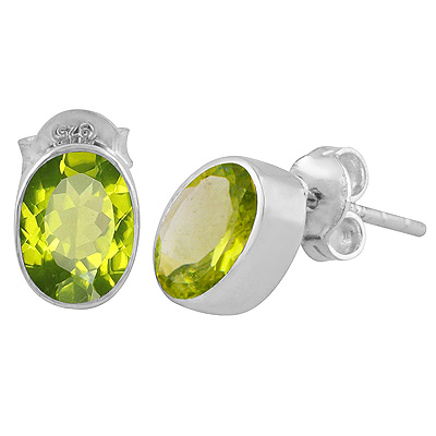 Home | Silver Earrings | cut stone studs | Beautifully Seated Gemstone Peridot Oval Shape 925 Sterling Solid Silver Stud Earrings