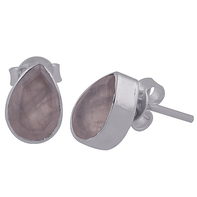Home | Silver Earrings | cut stone studs | Beautifully Seated Gemstone Rose Quartz Pear Shape 925 Sterling Solid Silver Stud Earrings