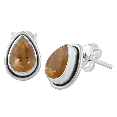Home | Silver Earrings | cut stone studs | Beautiful Plain Wire Around Citrine Pear Shape 925 Sterling Solid Silver Stud Earrings