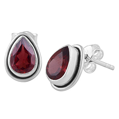 Home | Silver Earrings | cut stone studs | Beautiful Plain Wire Around Garnet Pear Shape 925 Sterling Solid Silver Stud Earrings