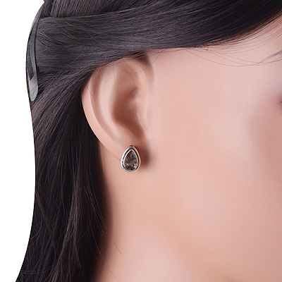 Home | Silver Earrings | cut stone studs | Beautiful Plain Wire Around Smoky Topaz Pear Shape 925 Sterling Solid Silver Stud Earrings