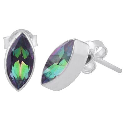 Minimal Beautiful Mystic Topaz Marquise Shape 925 Sterling Solid Silver Stud Earrings