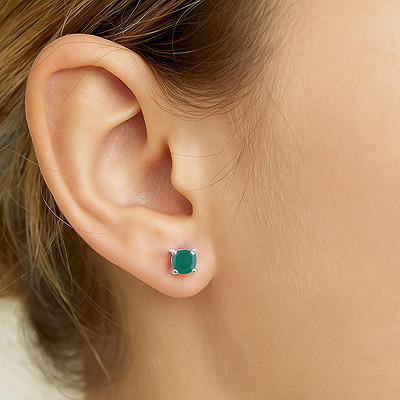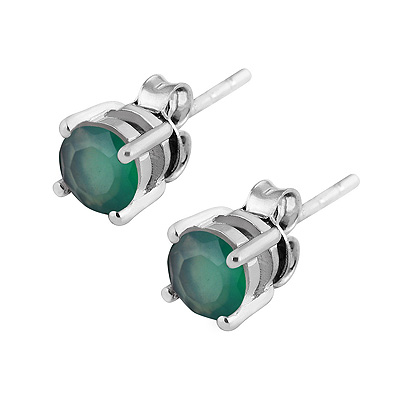 Home | Silver Earrings | cut stone studs | Stunning Prong Seated Gemstone Green Onyx Round Shape 925 Sterling Solid Silver Studs Earrings