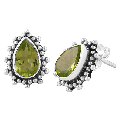 Beautifully Handcrafted Loaded With Rawa Work Around Peridot Pear Shape 925 Sterling Solid Silver Stud Earrings