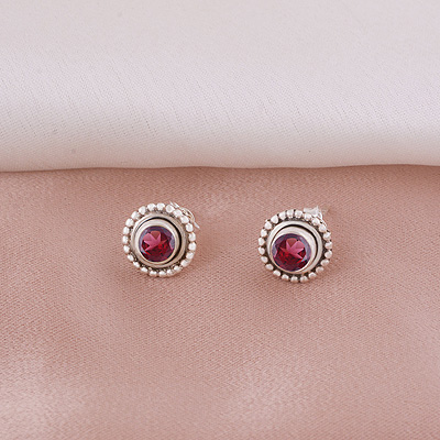 Gorgeous Oxidised Rawa Work Around White Cubic Zirconia Round Shape 925 Sterling Solid Silver Studs Earrings