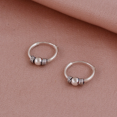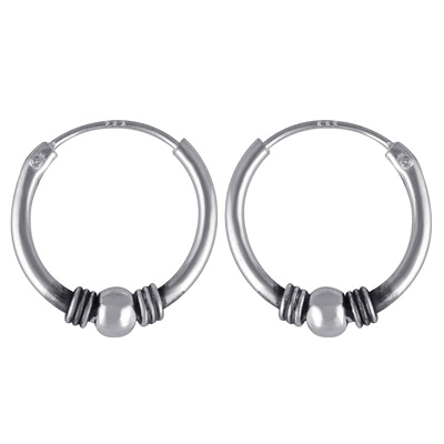 Home | Silver Earrings | Plain Earrings | Gorgeous Round Ball Bali Plain 925 Sterling Solid Silver Hoops Earrings