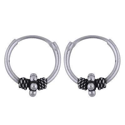 Home | Silver Earrings | Plain Earrings | Alluring Oxidised Twisted Wire and Rawa Work Bali Plain 925 Sterling Solid Silver Earrings