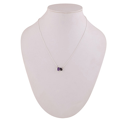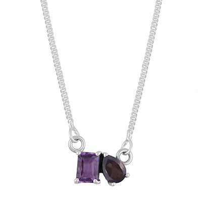 Gorgeous Birthstone Two Shaped Gemstone Amethyst Rectangle,Pear Shape 925 Sterling Solid Silver Necklace