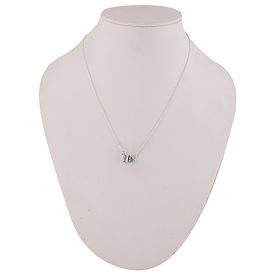 Gorgeous Birthstone Two Shaped Gemstone White Cubic Zirconia Rectangle,Pear Shape 925 Sterling Solid Silver Necklace