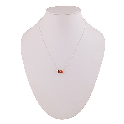 Gorgeous Birthstone Two Shaped Gemstone Garnet,Carnelian Rectangle,Pear Shape 925 Sterling Solid Silver Necklace