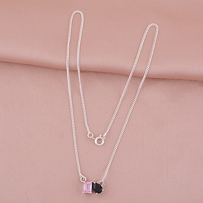 Gorgeous Birthstone Two Shaped Gemstone Mystic Opal,Rainbow Moonstone Rectangle,Pear Shape 925 Sterling Solid Silver Necklace