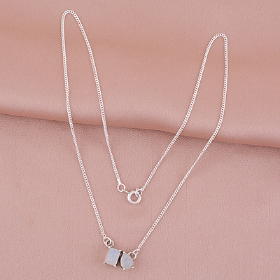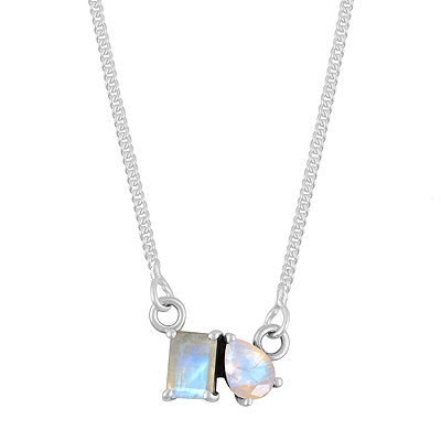 Gorgeous Birthstone Two Shaped Gemstone Rainbow Moonstone Rectangle,Pear Shape 925 Sterling Solid Silver Necklace
