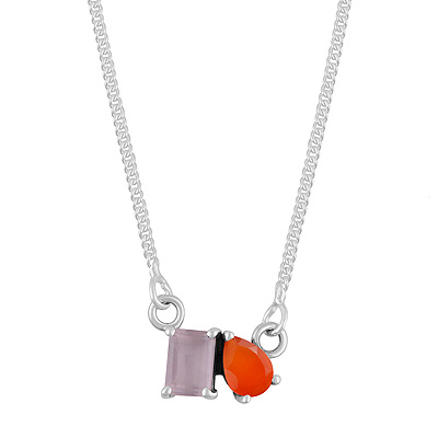 Gorgeous Birthstone Two Shaped Gemstone Rose Quartz,Carnelian Rectangle,Pear Shape 925 Sterling Solid Silver Necklace