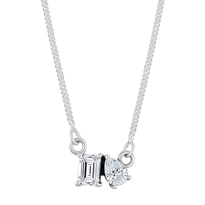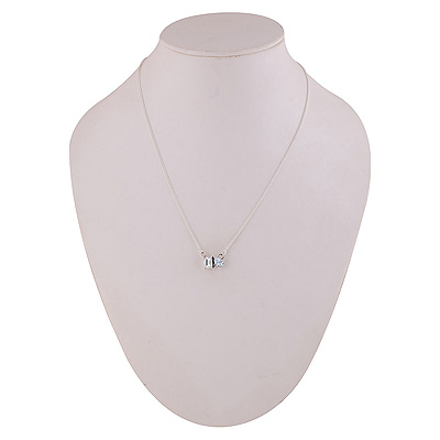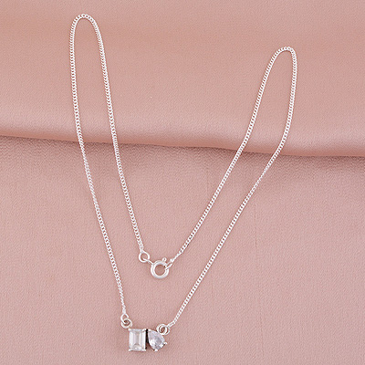 Gorgeous Birthstone Two Shaped Gemstone White Cubic Zirconia Rectangle,Pear Shape 925 Sterling Solid Silver Necklace
