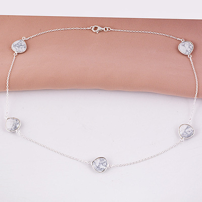 Home | Silver Necklaces | Cut stone Necklaces | Alluring Multiple Gemstone Howlite Pear Shape 925 Sterling Solid Silver Necklace
