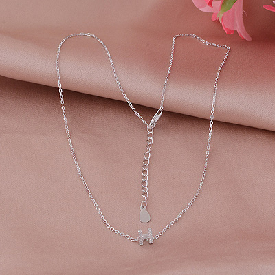 A Initial Studded Gemstone White Cubic Zirconia Round Shape 925 Sterling Solid Silver Necklace