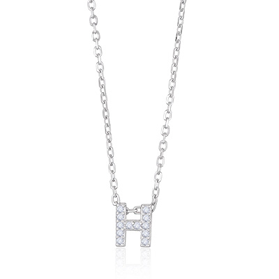 H Initial Studded Gemstone White Cubic Zirconia Round Shape 925 Sterling Solid Silver Necklace