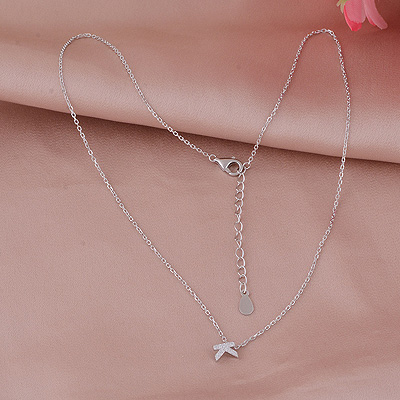 X Initial Studded Gemstone White Cubic Zirconia Round Shape 925 Sterling Solid Silver Necklace