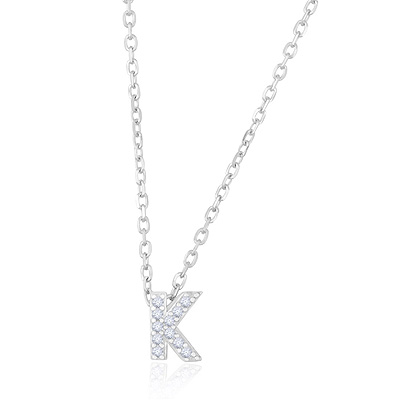 K Initial Studded Gemstone White Cubic Zirconia Round Shape 925 Sterling Solid Silver Necklace