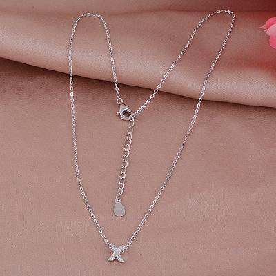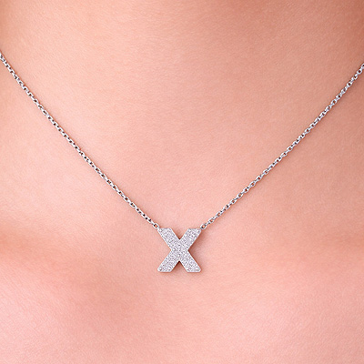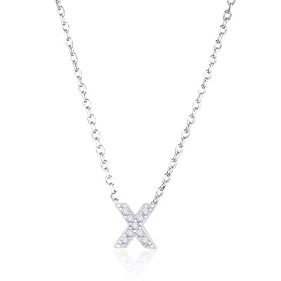 X Initial Studded Gemstone White Cubic Zirconia Round Shape 925 Sterling Solid Silver Necklace