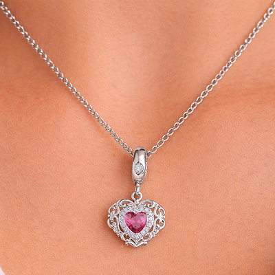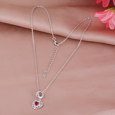 Victorian Heart Shaped Gemstone Studded Pink Cubic Zirconia Round Shape 925 Sterling Solid Silver Necklace