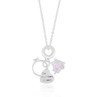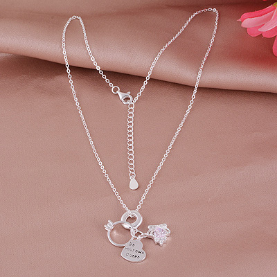 Star Sun Moon Charms Hanging w/ Gemstones Cubic Zirconia Round Shape 925 Sterling Solid Silver Necklace