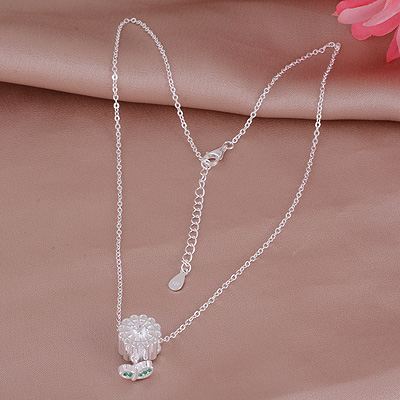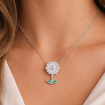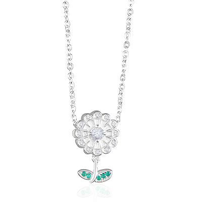 Alluring Flower Studded w/ Gemstones White Cubic Zirconia Round Shape 925 Sterling Solid Silver Necklace