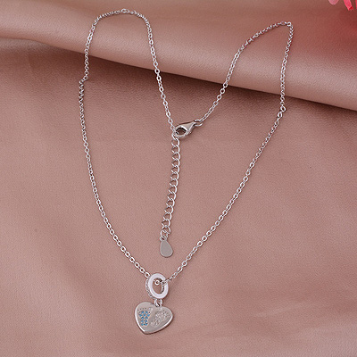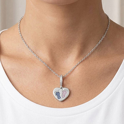 Baby Girl-Boy Footprints In Heart Blue & Pink Gemstone Studded Cubic Zirconia Round Shape 925 Sterling Solid Silver Necklace